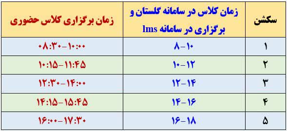 - کلاسهای درسی در پنج بازه زمانی به شرح ذیل تعریف شده است.